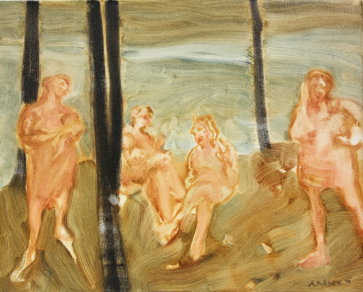 SOLD - Meeting on the Lake - sketch I, 2015, oil on canvas, 11” x 11.5"