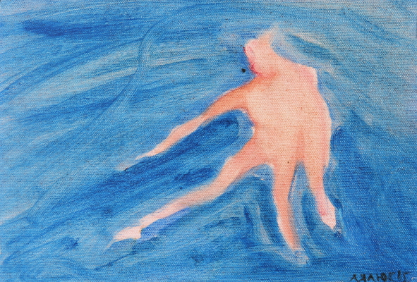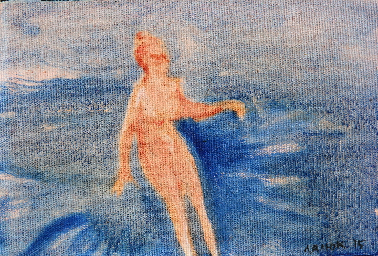 SOLD - Girl on a Lake - sketch I, 2015, oil on canvas, 5.5” x 8.5"