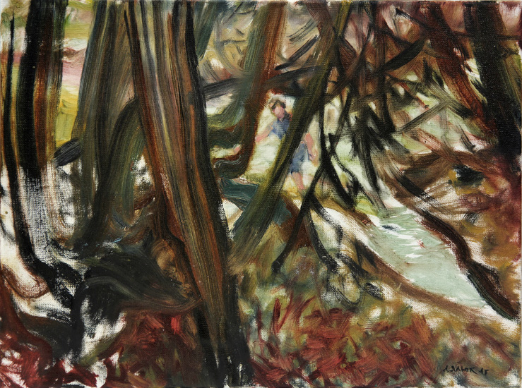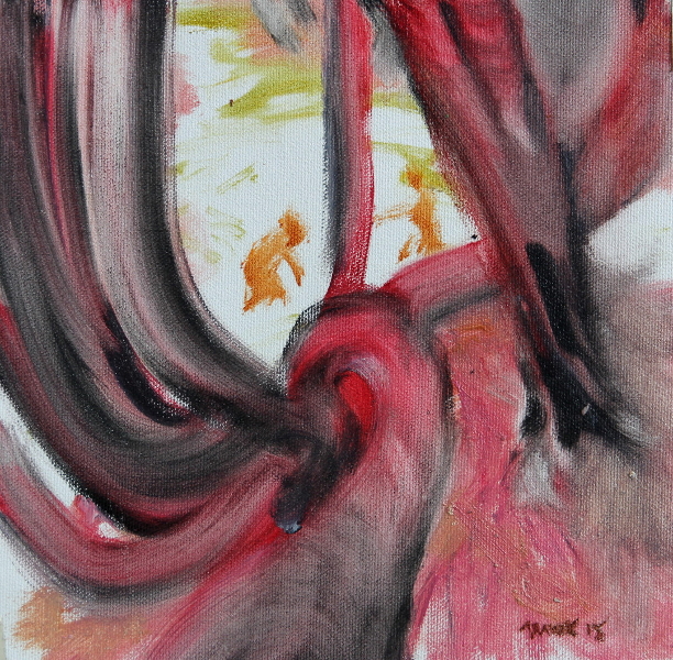SOLD - It is Good to Run in the Rain I , 2016, oil on canvas, 11.5” x 14"