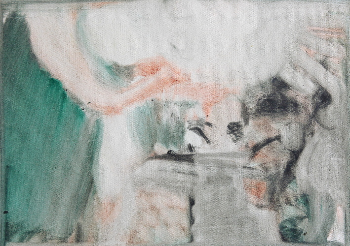 POR - Meeting on the Lake - sketch II, 2015, oil on canvas, 8” x 10"
