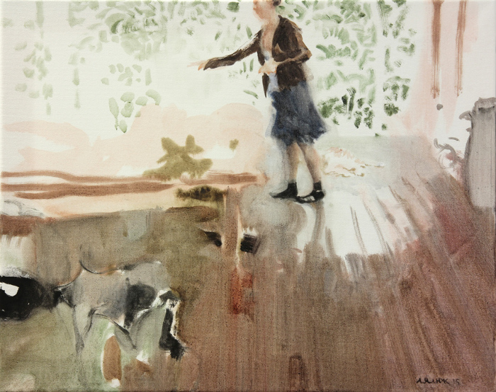 POR - JJ and Coat Buttons, 2015, Toronto, oil on canvas, 16” x 12"
