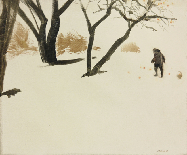 SOLD - Harvesting Winter Appeles - Mom on Roselawn, 2015, Toronto, oil on canvas, 13” x 16"