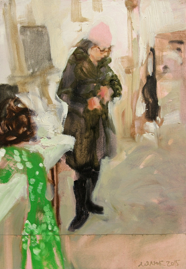 ? - Gallery Opening (sketch), 2015, Toronto, oil on canvas, 7” x 4.5"